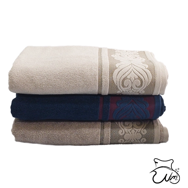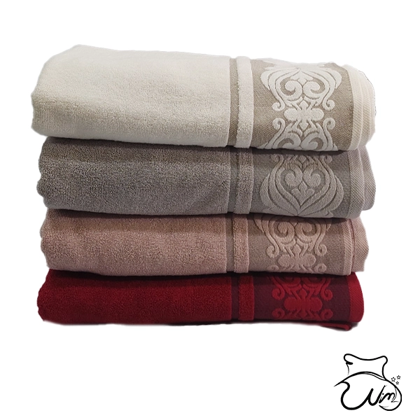 - طراحی جذاب: طرحهای ژاکارد اغلب دارای بافت برجسته و عمق لمسی هستند (به همین دلیل به آنها “ابعادی” گفته میشود). این الگوها بخشی از ساختار حوله هستند، نه اینکه پس از بافت روی آن چاپ یا گلدوزی شده باشند، که باعث میشود طرحها در طول زمان و شستشو محو نشوند.