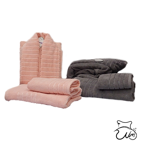 در مجموع هشت تکه‌ی حوله‌ای در این مجموعه وجود دارد. حوله‌های پالتویی هر دو از سایز بزرگ هستند. این حوله‌ها از جنس پنبه هستند و جیب هم دارند. نحوه بسته شدن حوله‌ها هم به وسیله کمربند است که به صورت جدا از حوله در بسته این کالا وجود دارد. برای خرید این محصول می‌توانید به فروشگاه کالای خواب نیما واقع در بازار بزرگ تهران مراجعه کنید. علاوه بر این مدل می‌توانید مدلهای زیاد دیگری از سرویس حوله عروس و داماد را دیده و خرید خود را انجام دهید.